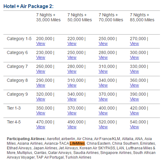 Let’s look at the Marriott deal first. LifeMiles isn’t actually one of the better transfer partners as it falls under package two and this awards a maximum of 85,000 miles (compared to 120,000 or 132,000 with United). After the 25% transfer bonus you’d earn up with a maximum of 106,250 (still well short of the 120,000 you’d get with other partners).