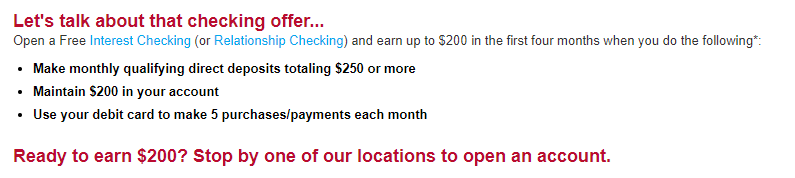 - Maintain a minimum daily balance of $200 in the Free Interest Checking or Relationship Checking account.