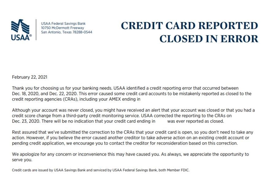 Update 2/22/21: USAA has sent out letters surrounding this error.