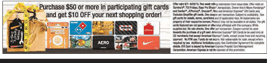 - Purchase $50+ in select gift cards from Shoprite and receive a $10 Shoprite credit to be used for future grocery purchases.