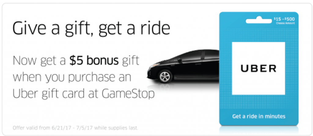 - Buy an Uber gift card ($15-$500) and get an additional $5 bonus