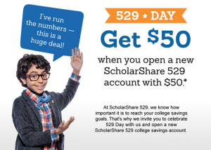 - Open a 529 plan with ScholarShare with $50 and get a $50 match