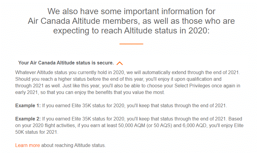 Air Canada has followed Delta & United by extending status. Whatever status you hold will be extended through the end of 2021. In addition if you earn status in 2020 you can gift that status to a love one for 2021.