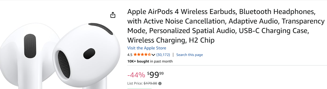 - Amazon is selling Apple Airpods 4 With Noise Cancellation For $99.99.