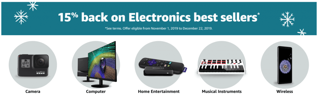 - Amazon is offering up to 20% back on select items in certain categories like electronics and furniture.