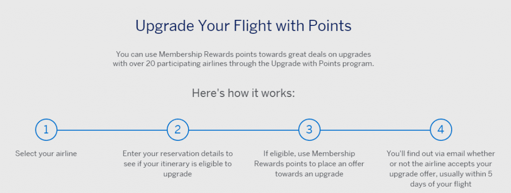 American Express has partnered with Plusgrade to allow cardholders to upgrade seats to first, business or premium economy with Membership Rewards points (or Membership Rewards points and cash). You can upgrade flights with a total of 20 airlines currently. When using this feature, keep in mind the following: