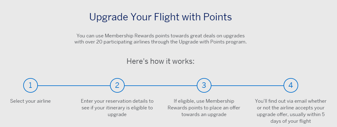 American Express has partnered with Plusgrade to allow cardholders to upgrade seats to first, business or premium economy with Membership Rewards points (or Membership Rewards points and cash). You can upgrade flights with a total of 20 airlines currently. When using this feature, keep in mind the following:
