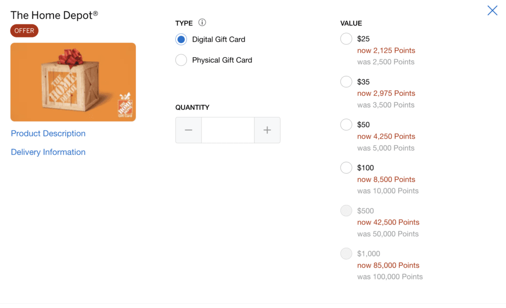 Some people value Membership Rewards points at well over 1 cent-per-point and won’t find this deal interesting. Yet there aren’t many easy ‘cashout’ options with MR points at a decent rate. This deal gives you around 1.17 cents per point in Home Depot gift cards currency which many will value more than the baseline 1 CCP.