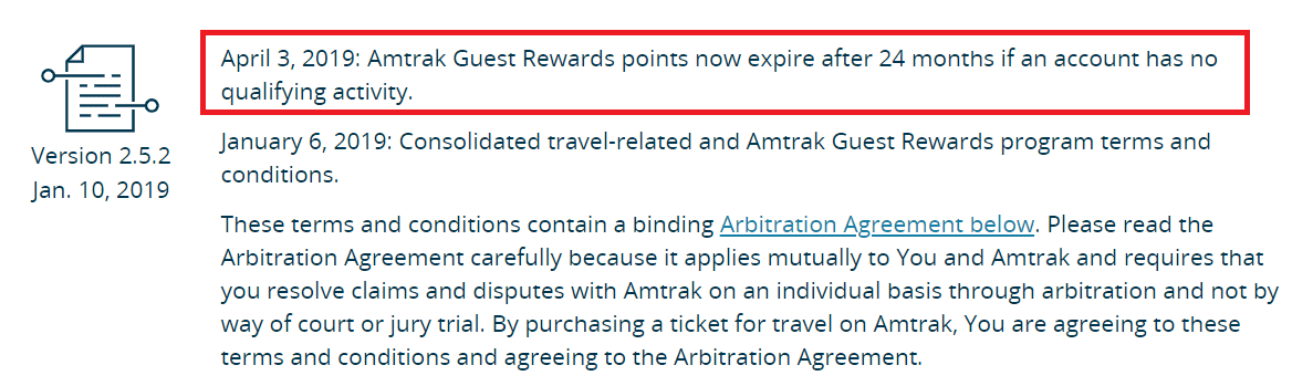 Last Wednesday Amtrak changed the expiration rules for Amtrak Guest Rewards points. Previously points expired after 36 months of inactivity, they now expire after 24 months of inactivity. It’s disappointing that Amtrak hasn’t even communicated this change to rewards members, I suspect some people will end up with expired points when they thought they had another 12 months of inactivity before those points expired.