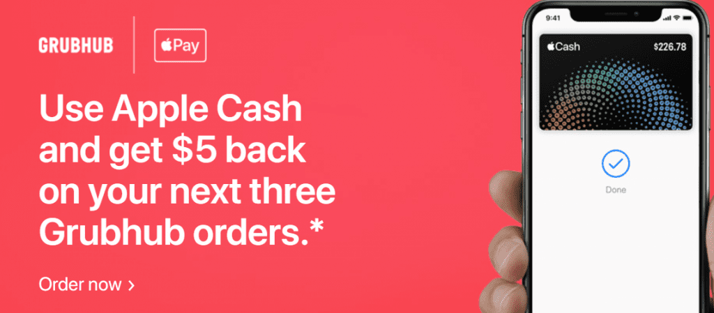 - Apple Cash is offering $5 back on your next three GrubHub orders