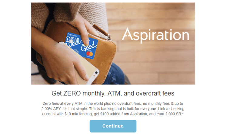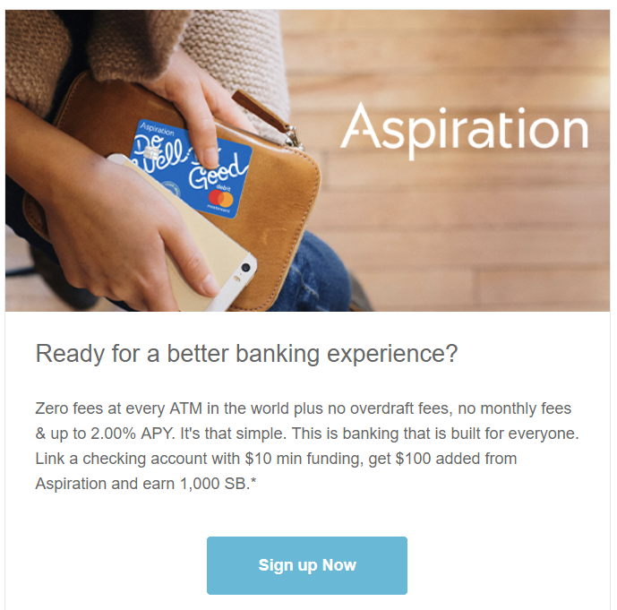- Aspiration is offering a bonus of $100 when you open a new Spend & Save account and complete the following requirements: