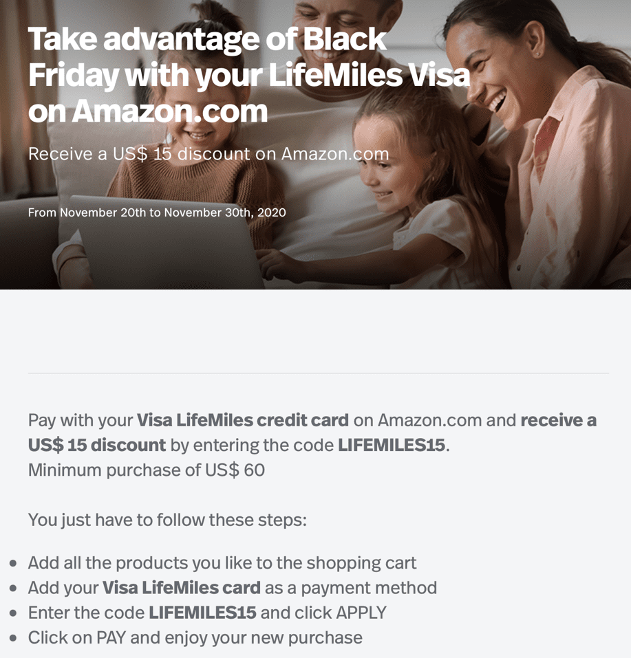 - Avianca LifeMiles Avianca cardholders $15 off Amazon when you spend $60 or more and use promo code LIFEMILES15