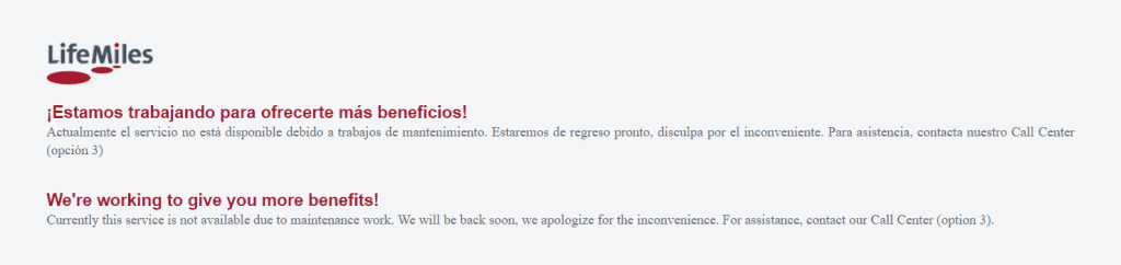 Currently users navigating to the Avianca LifeMiles website are presented with the following error message: