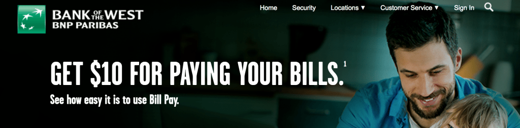 - The bonus (maximum of 1 per Bill Pay subscriber) is a $10 non-transferable credit to the checking account and will be credited by March 30, 2018; to be eligible for the bonus, the checking account from which the Bank of the West Bill Pay transactions were made must remain open at the time of offer fulfillment