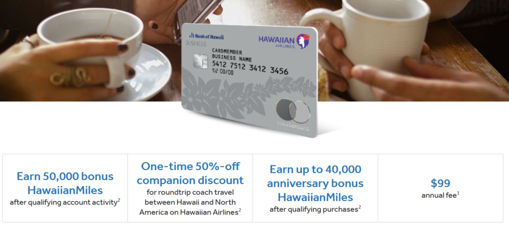 - 40,000 bonus HawaiianMiles if you spend $100,000 or more in annual purchases