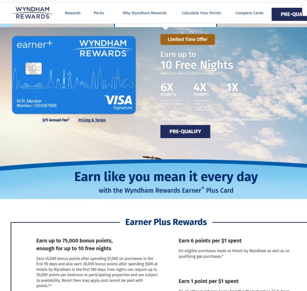 - 6x points at Wyndham properties and on qualifying gas purchases