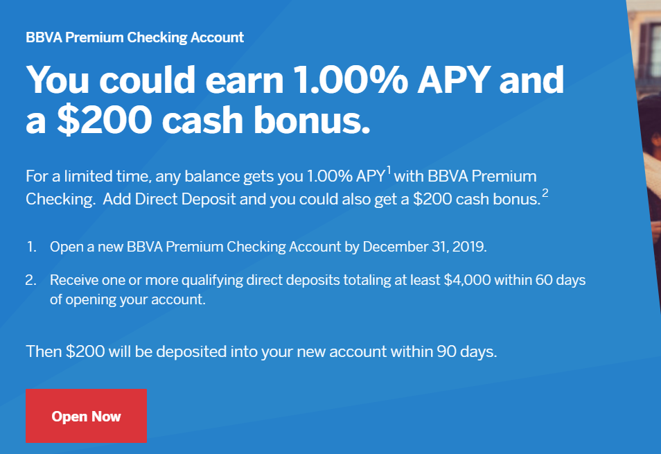 - BBVA Compass is offering $200 when you open a new BBVA Premium Checking Account and complete the following requirements: