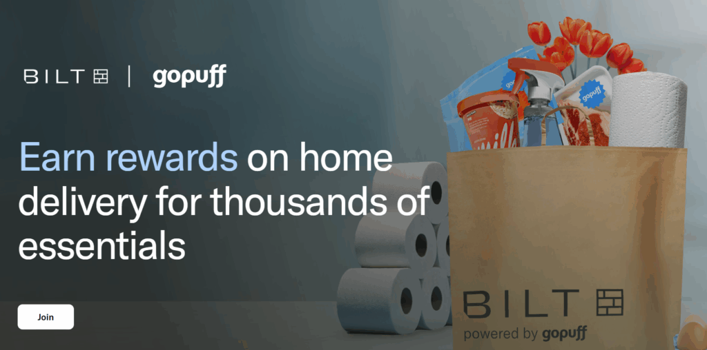 Bilt has partnered with home delivery service GoPuff to offer ‘Bilt Home Delivery’ powered by gopuff. This seems to just be a white label of GoPuff that lets you earn and redeem Bilt points. The rates are as follows: