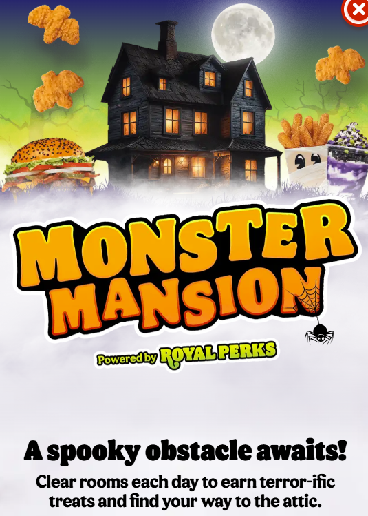 - Burger King has a new free to play game called Monster Mansion that allows you to win free food/drinks or crowns