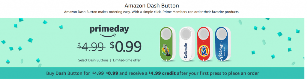 Amazon sells Dash buttons to quickly order numerous products on Amazon. Dash buttons usually cost $4.99 and come with a $4.99 credit after using the Dash button the first time. You need to have Prime membership to buy Dash buttons.