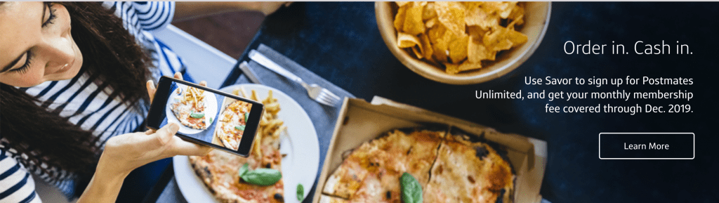 -  Capital One Savor cardholders can get a statement credit reimbursement for a $9.99 monthly membership fee for Postmates Unlimited when using your Savor card to pay for the membership fees. Valid through December, 2019.
