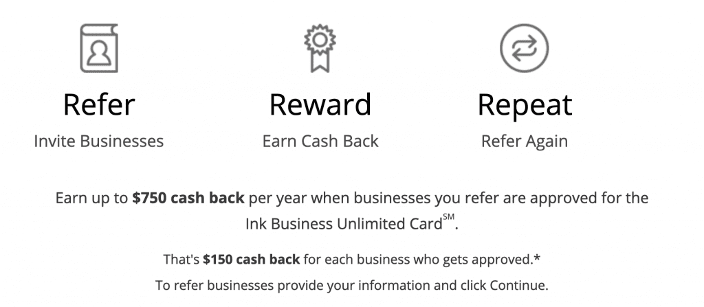- Refer a friend to the INK Unlimited card and get $150 (15,000 points), up to $750 per calendar year.