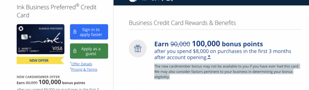 The new cardmember bonus may not be available to you if you have ever had this card. We may also consider factors pertinent to your business in determining your bonus eligibility.