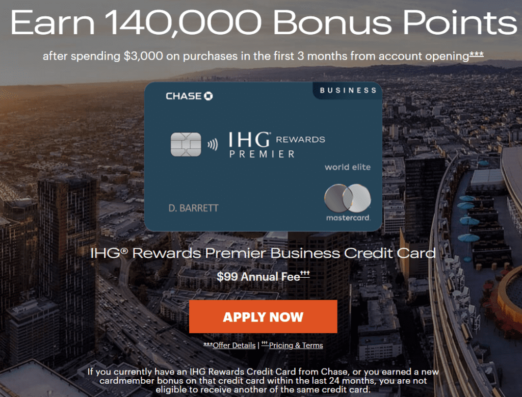 - Chase IHG Rewards Premier Business Credit Card is offering 140,000 points after $3,000 in purchases within the first three months