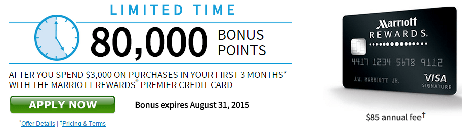 - Chase has increased the sign up bonus on the Chase Marriott Premier card to 80,000 Marriott points when you spend $3,000 or more in the first three months.