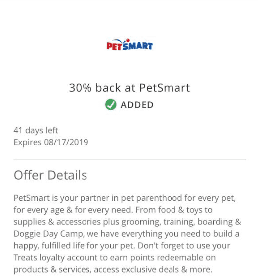 - Get 30% back at PetSmart, up to $21 cash back (Spend $70 to max out offer).