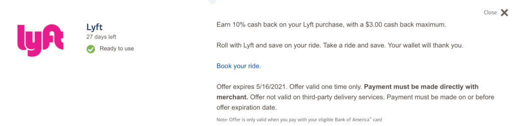 I see this on my Bank Amerideals, it might be on Chase Offers and other banks that use the same back-end as well. This is the first we’ve seen Lyft show up there. Nice little discount.