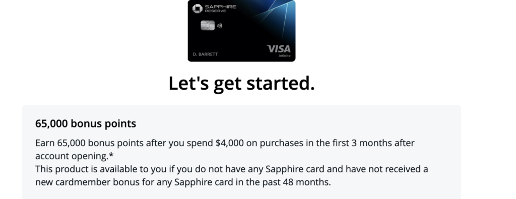 - Via The Infatuation, Chase is offering 65,000 points after $4,000 in spend within the first three months from card opening on the Sapphire Reserve card.