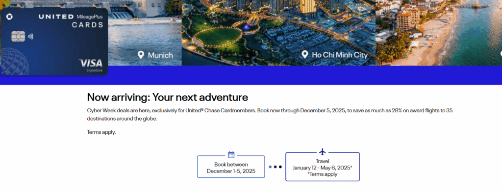 - Chase United cardholders can get off up to 28% off award flights for Cyber Monday.