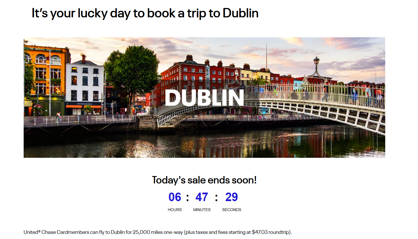 - Day one: one way to Dublin for 25,000 miles
