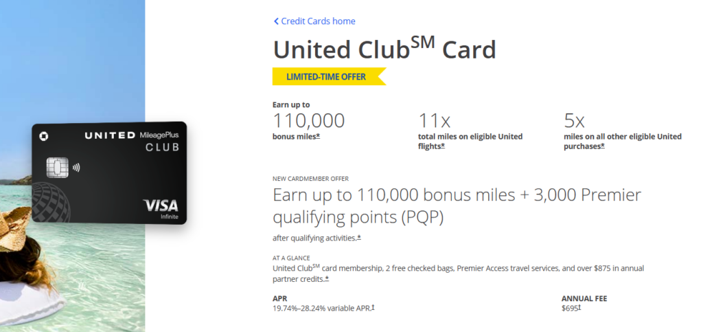 - This credit card is not available to either (i) current cardmembers of any United Clubâ„ credit card, or (ii) previous cardmembers of any United Club credit card who received a new Cardmember bonus for this credit card within the last 24 months. If you are an existing United Club Visa Signature Cardmember and would like this credit card, please call the number on the back of your card to see if you are eligible for a credit card product change