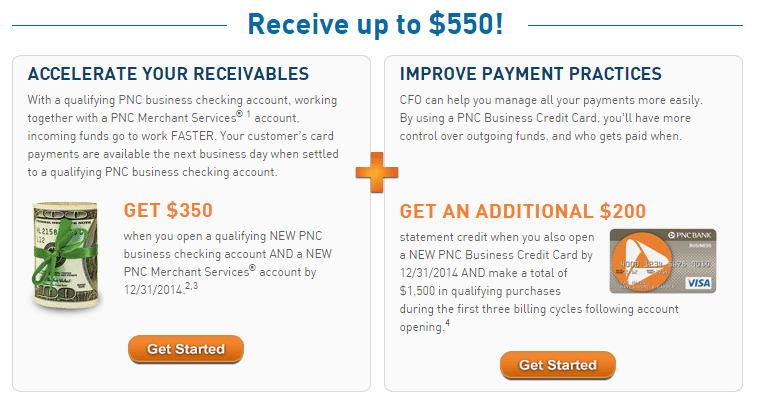 - Receive a $350 sign up bonus when you open a new PNC business checking account and a new PNC merchant services account