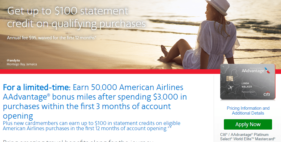 - Citi / AAdvantage Platinum Select World Elite MasterCard is offering 50,000 miles after $3,000 in spend within the first three months.