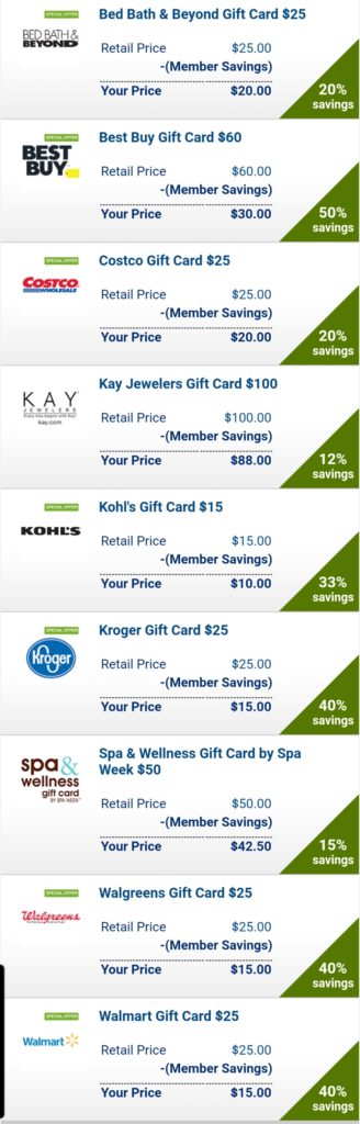 - Citi Simplicity and Diamond Preferred members can get the following discounts on gift cards: