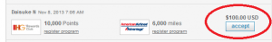 I decide to select “move out of program”, American Airlines AAdvantage and 10,000 miles. At first glance most of the offers are terrible (e.g 1,000 IHG miles for 3,000 AAdvantage miles or 1,000 miles for 5,000 miles) and that’s because points.com has decided to list the offers in the chronological order (oldest first) meaning that all of the offers that are junk slowly float to the top, whilst the better offers (which people actually accept because they aren’t total ripoffs) are nearer the bottom. The better offers still weren’t great, but 10,000 IHG miles for 6,000 AAdvantage is much better than that offered at the top.