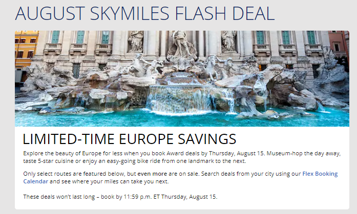 - Delta has a new round of flash sales. This time it’s various European destinations on sale from 26,000 miles