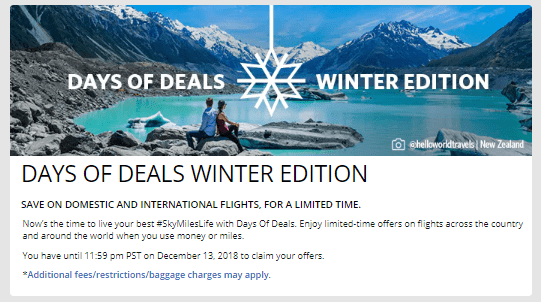 - Tickets must be purchased no later than December 13, 2018 at delta.com