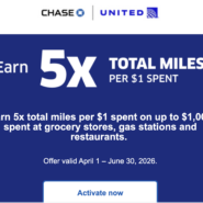 Chase cards: Activate to earn 5x total miles per $1 spent on up to $1,000 spent at grocery stores, gas stations and restaurants. Offer valid through June 30th Read More →