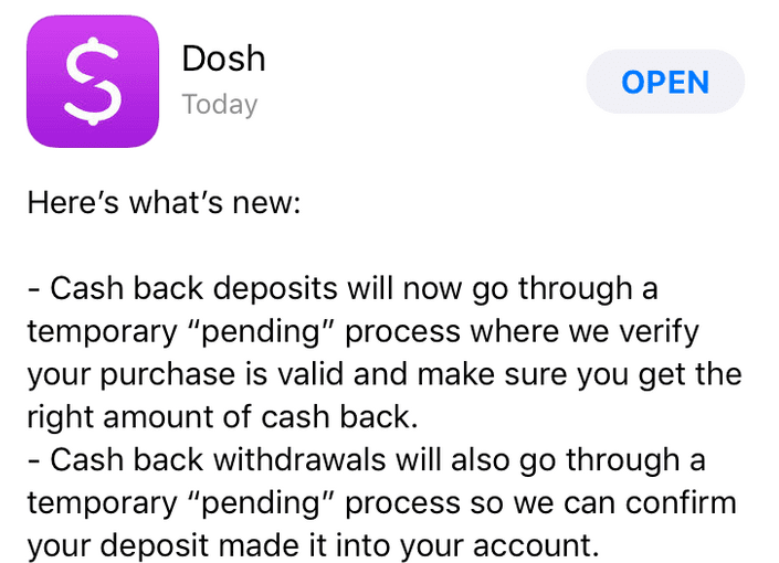 Dosh (card linked loyalty program) recently made an update and it’s potentially very bad news. The update clearly states two things: