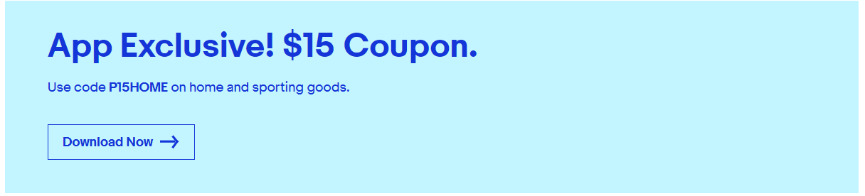 - Get $15 off $75 when you use the eBay app and promo code P15HOME.Â