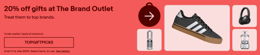 - eBay is offering 20% off select brands with promo code TOPGIFTPICKS