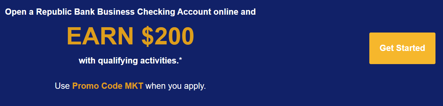 - Republic Bank is offering a $200 bonus when you open a new business or personal checking account and complete the following requirements: