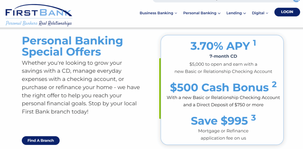 - First Bank (Myfirstbank) is offering a $500 bonus when you open a new Basic or Relationship Checking Account and a Direct Deposit of $750 or more