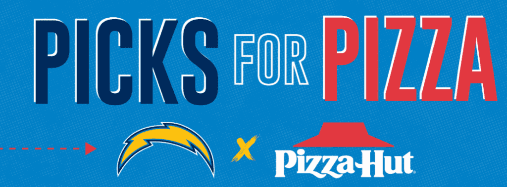 - Following a Chargers interception, register below to receive a coupon for a free medium one topping pizza from Pizza Hut! Each game is a new opportunity for Chargers fans to win free pizza!
