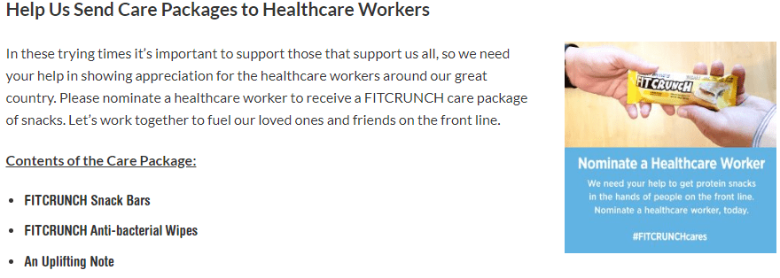 - Fitcrunch is offering a fitcrunch care package to healthcare workers that includes: