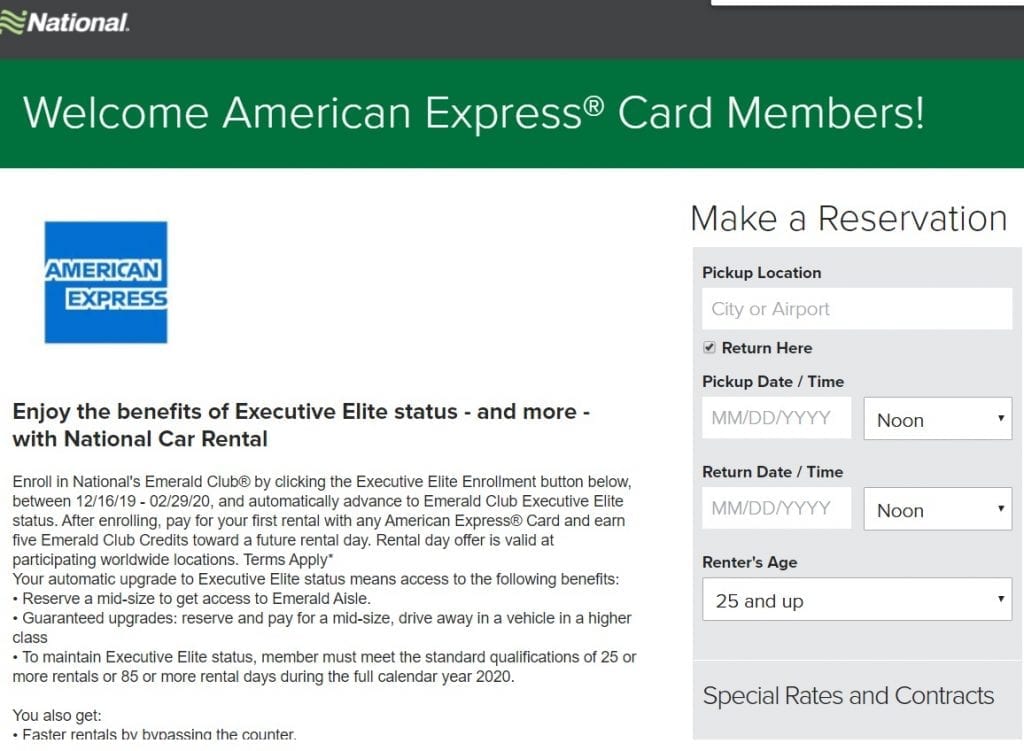 - National car rental is offering free executive ELITE status until 02/01/2021 for American Express cardholders that aren’t currently National members.